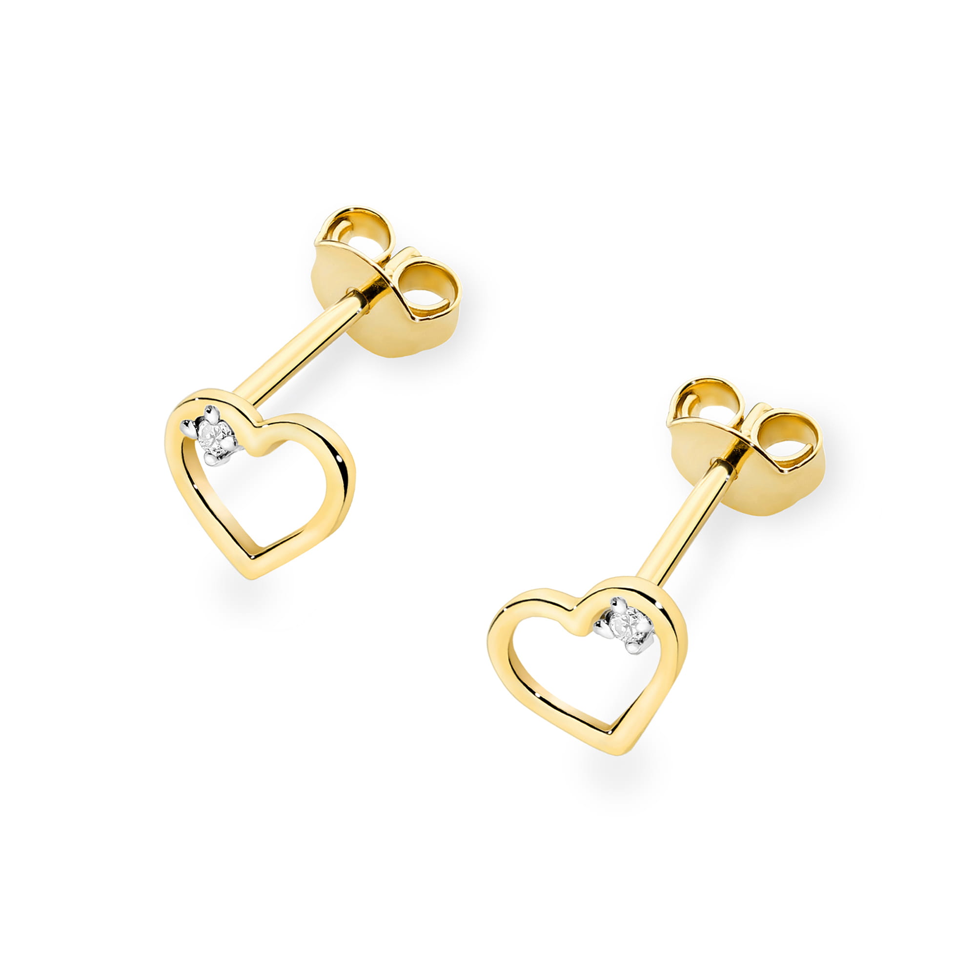 Kolczyki Złote pr 585 Serca z Brylantami 0.01 ct
